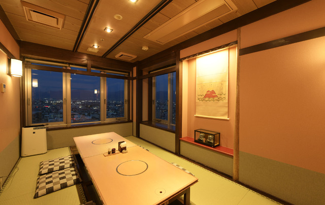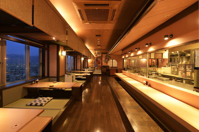 南アルプスの間 南アルプスの方面がご覧頂けます。 4名様ご着席いただけるテーブルが6テーブルございます。 (最大24名様まで着席可能) 画像はテーブルがつながっておりますが、席と席との間隔を空けたり、 2テーブルをつなげたりとレイアウトなどご相談も可能です。